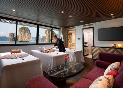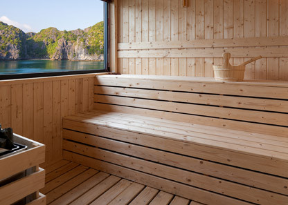 Take a refreshing dip in the heated outdoor pool, which is open year-round for your enjoyment. Located on the front deck with nearly 50 sqm of space, the pool offers panoramic views of Lan Ha Bay's majestic landscapes. As night falls, the pool transforms into a dazzling spectacle with LED lights, perfect for a romantic evening swim or simply soaking in the magical atmosphere.
