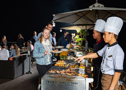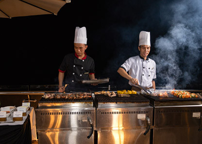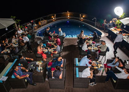 Located on the third deck, the Stellar of The Seas fine dining restaurant is designed in a comfortable and romantic style. With 60 elegant indoor and outdoor seats, indulge in culinary masterpieces prepared by our professional chef. Savor international buffets for breakfast, delectable set menus for lunch, and unforgettable BBQ dinners poolside. The restaurants will provide complete amenities and pampering services for your meals while cruising through the magnificent landscapes of Lan Ha Bay.